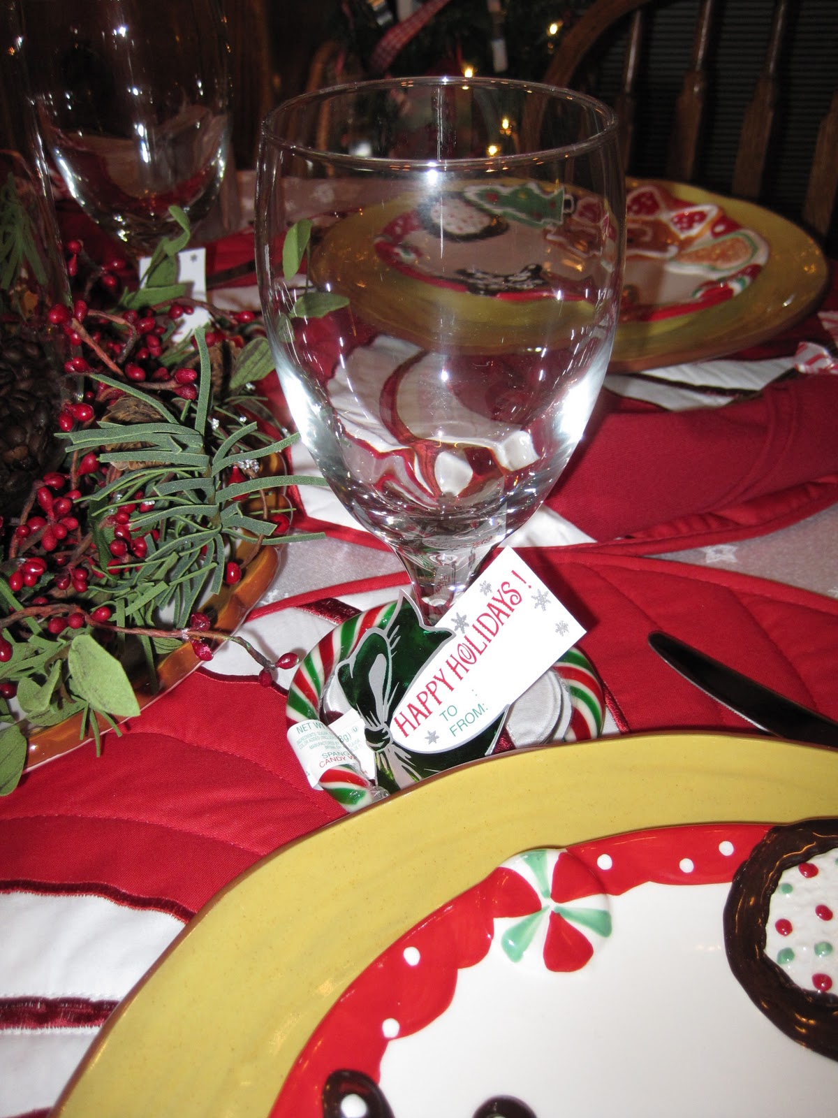 I just love your plates. I have been looking for plates like these. I had wanted to put my gingerbread house as a centerpeice and uses dished to compliment. Ilove the peppermint mats and the tags around the glasses. Happy Holidays.